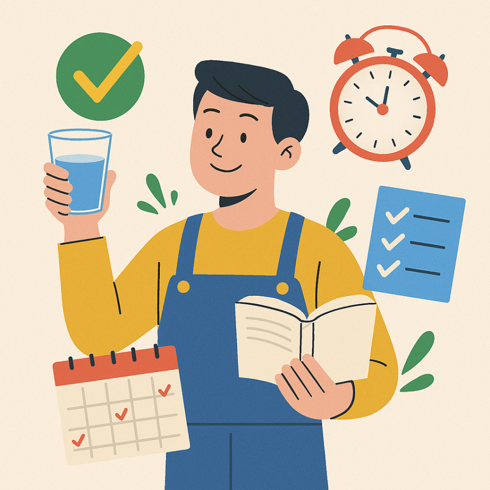 퇴근 후 ‘3시간 동안 공부하겠다’는 거창한 계획은 번아웃을 유발하기 쉽습니다. 핵심은 ‘꾸준히’ 성장하는 것이므로, 뇌가 부담 없이 시작할 수 있는 **’최소 실행 가능한 목표(MVG)’**를 설정해야 합니다.