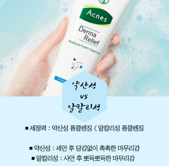 • 클렌징 선택: 세정력이 강한 알칼리성 클렌저는 피부 표면의 유익균과 지질(장벽 구성 성분)까지 씻어내 장벽을 약하게 만듭니다. pH 5.5~6.5의 약산성 클렌저를 사용하는 것이 환절기 기초 케어의 첫걸음입니다.